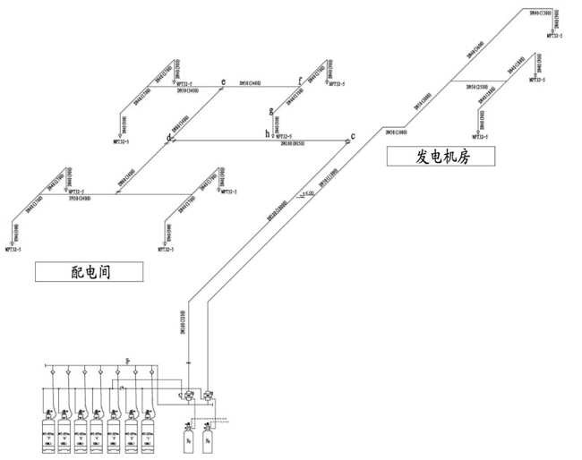 該工程為某商業(yè)大廈地下二層氣體消防工程,首先明確建筑物本身的建筑特點和功能特點,了解該建筑地下二層的防火工程設(shè)計中其它專業(yè)的設(shè)施及對消防專業(yè)的設(shè)計要求,然后根據(jù)有關(guān)規(guī)范對建筑物定性,確定系統(tǒng)的總體結(jié)構(gòu)。按照氣體滅火設(shè)計規(guī)范,該樓層配電房、發(fā)電機(jī)房、油庫不能應(yīng)用水噴淋滅火系統(tǒng),因此選用氣體滅火系統(tǒng)方案,以確保消防滅火的可靠性