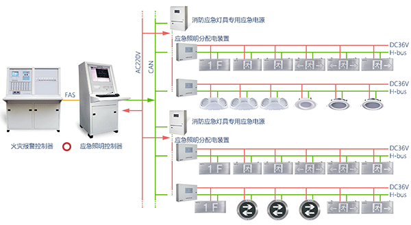 1)集中控制型消防應(yīng)急照明和疏散指示系統(tǒng),應(yīng)由火災(zāi)報(bào)警控制器或消防聯(lián)動(dòng)控制器啟動(dòng)應(yīng)急照明控制器實(shí)現(xiàn)。