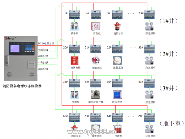 根據(jù)智能化管理要求,需要對(duì)整個(gè)商場(chǎng)綜合樓的消防設(shè)備供電電源的工作狀態(tài)進(jìn)行全過(guò)程連續(xù)監(jiān)測(cè)、集中控制和統(tǒng)一調(diào)度。