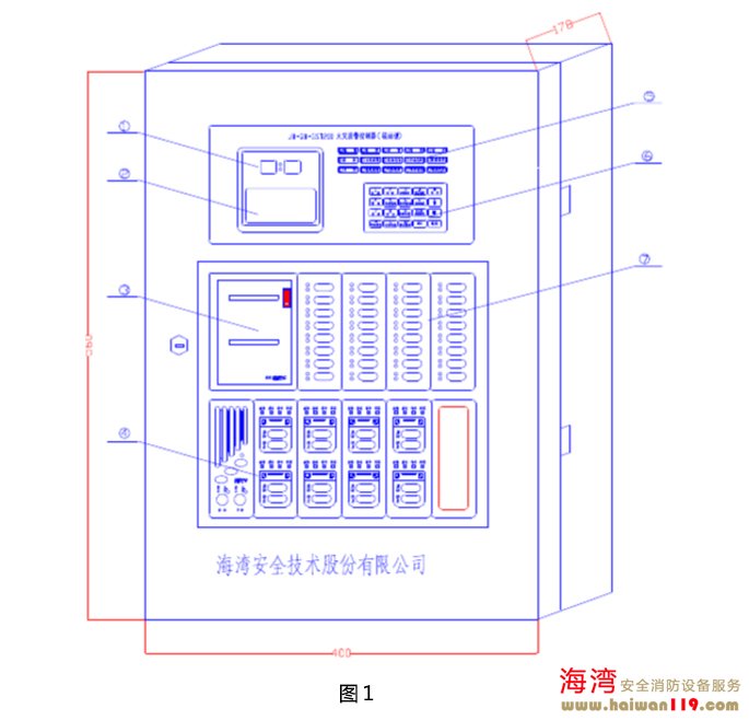 JB-QB-GST200火災(zāi)報(bào)警控制器(聯(lián)動型)的外觀示意圖及內(nèi)部結(jié)構(gòu)圖如圖1、圖2所示: